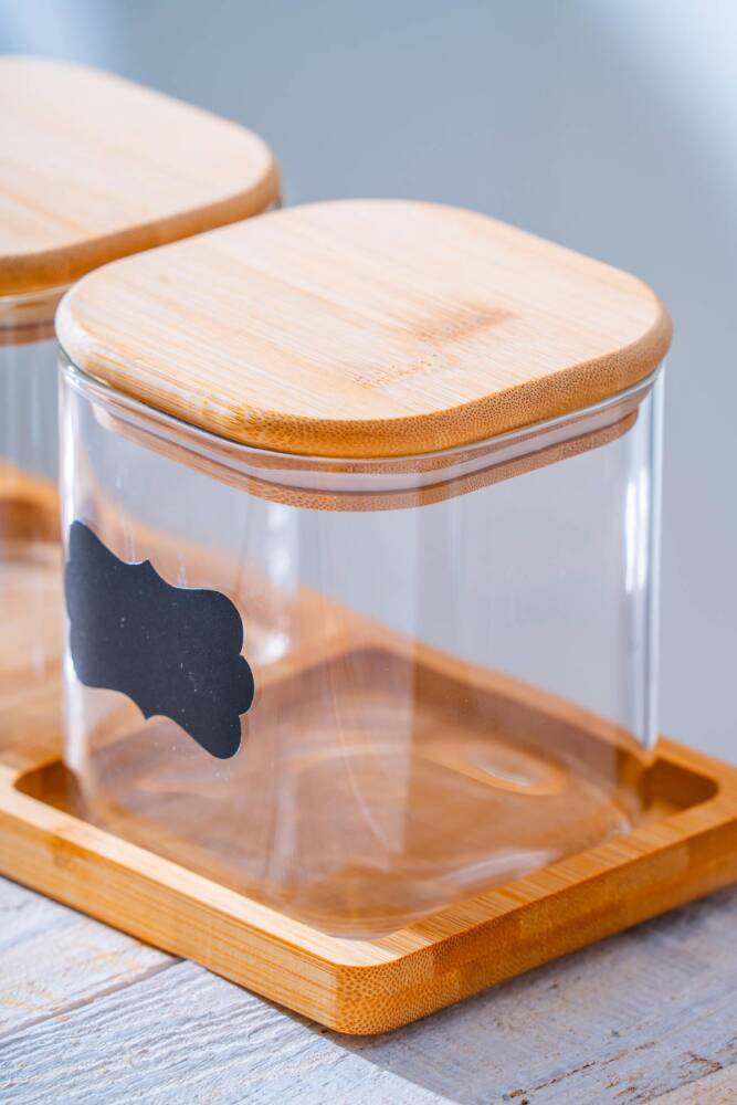 Malibu Düz Bambu Standlı 3 lü Cam Kavanoz Seti